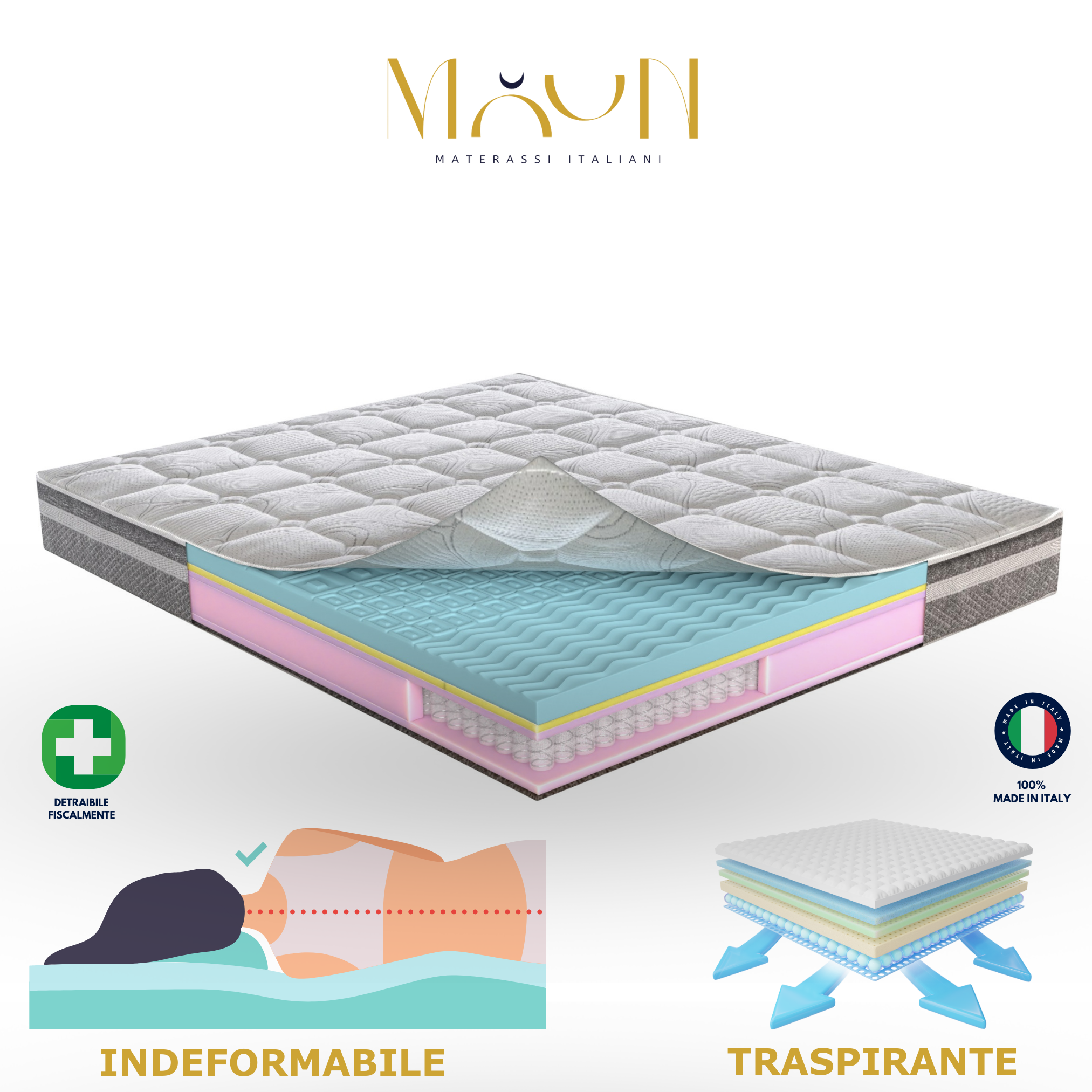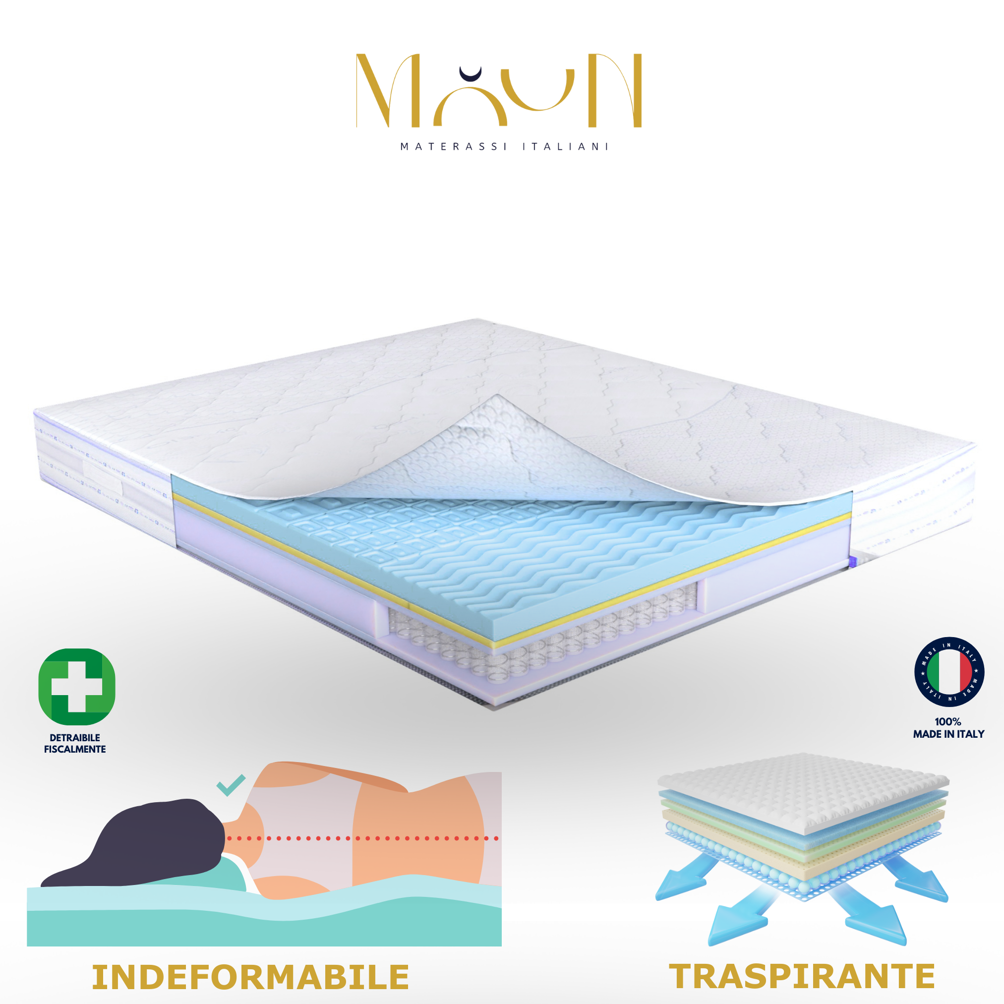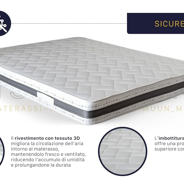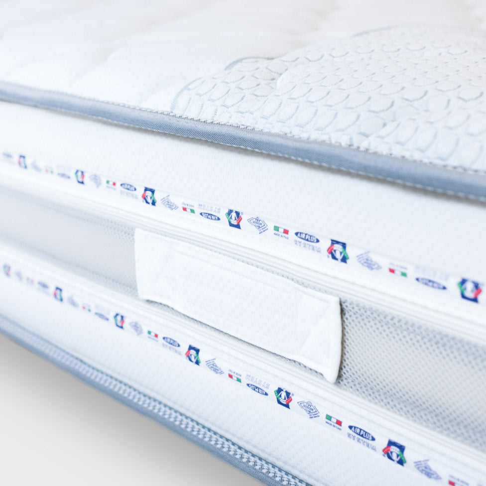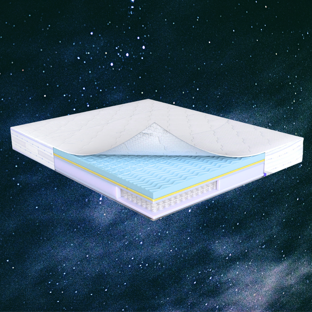 Komfort und Technologie vereinen sich, um Ihnen maximalen Schlafgenuss zu bieten. Unsere Matratzen werden aus Materialien höchster Qualität hergestellt, um ergonomische Unterstützung, hervorragende Belüftung und Langlebigkeit zu gewährleisten. Unser innovatives Thermoregulierungssystem sorgt dafür, dass Sie im Schlaf eine ideale Temperatur beibehalten, sodass Sie jeden Morgen frisch und ausgeruht aufwachen.
