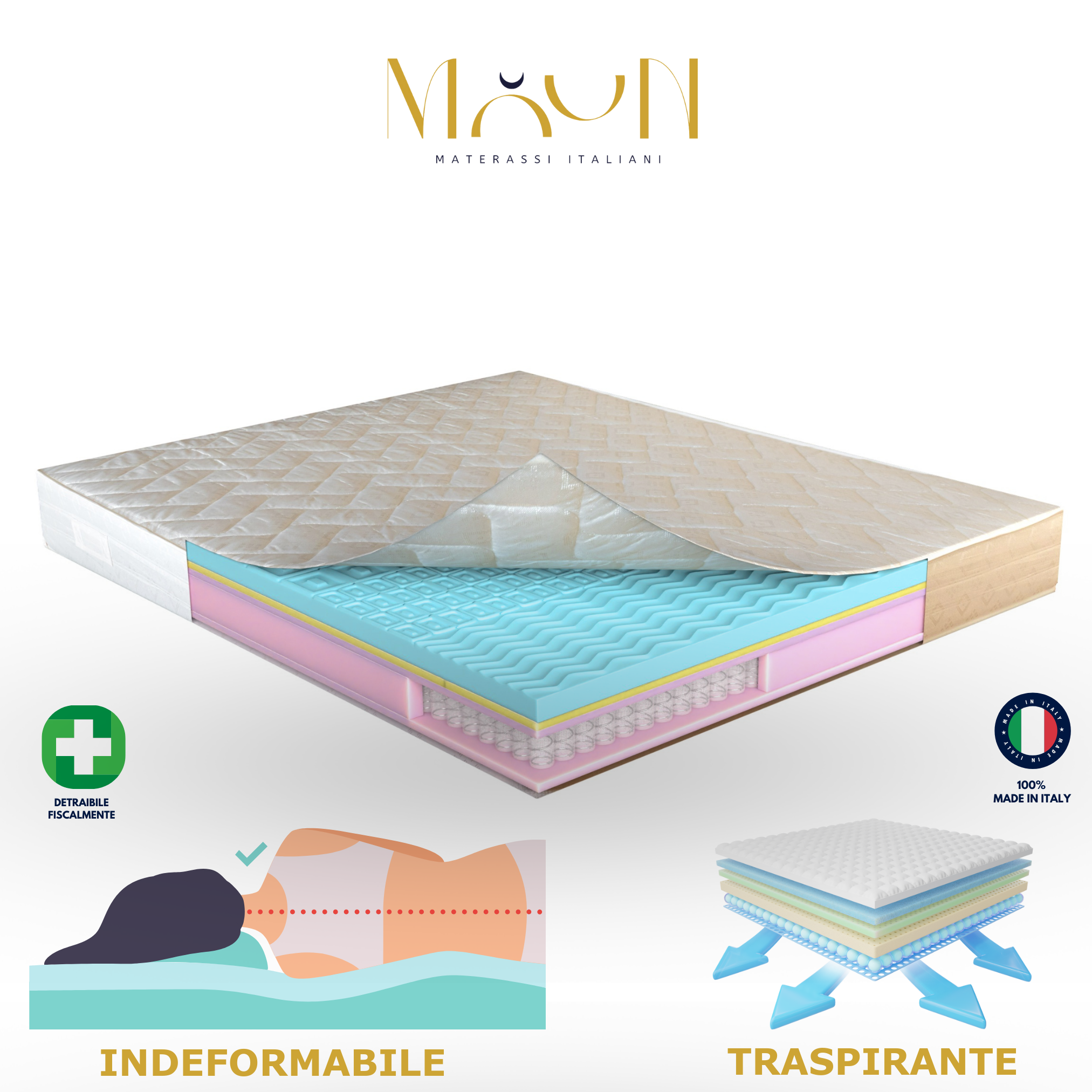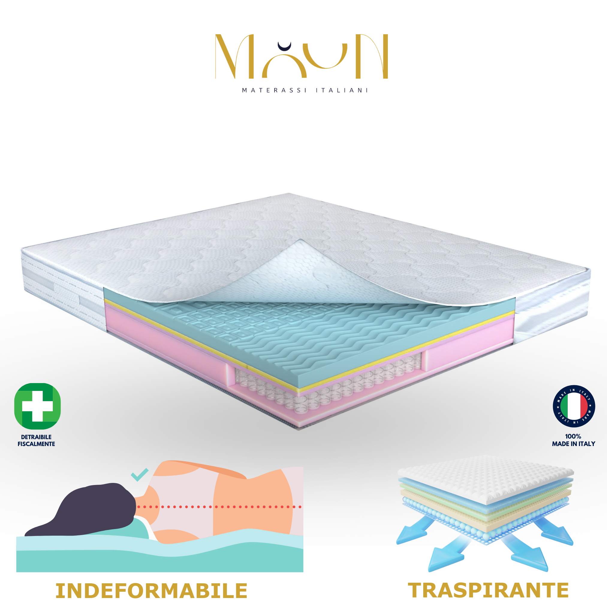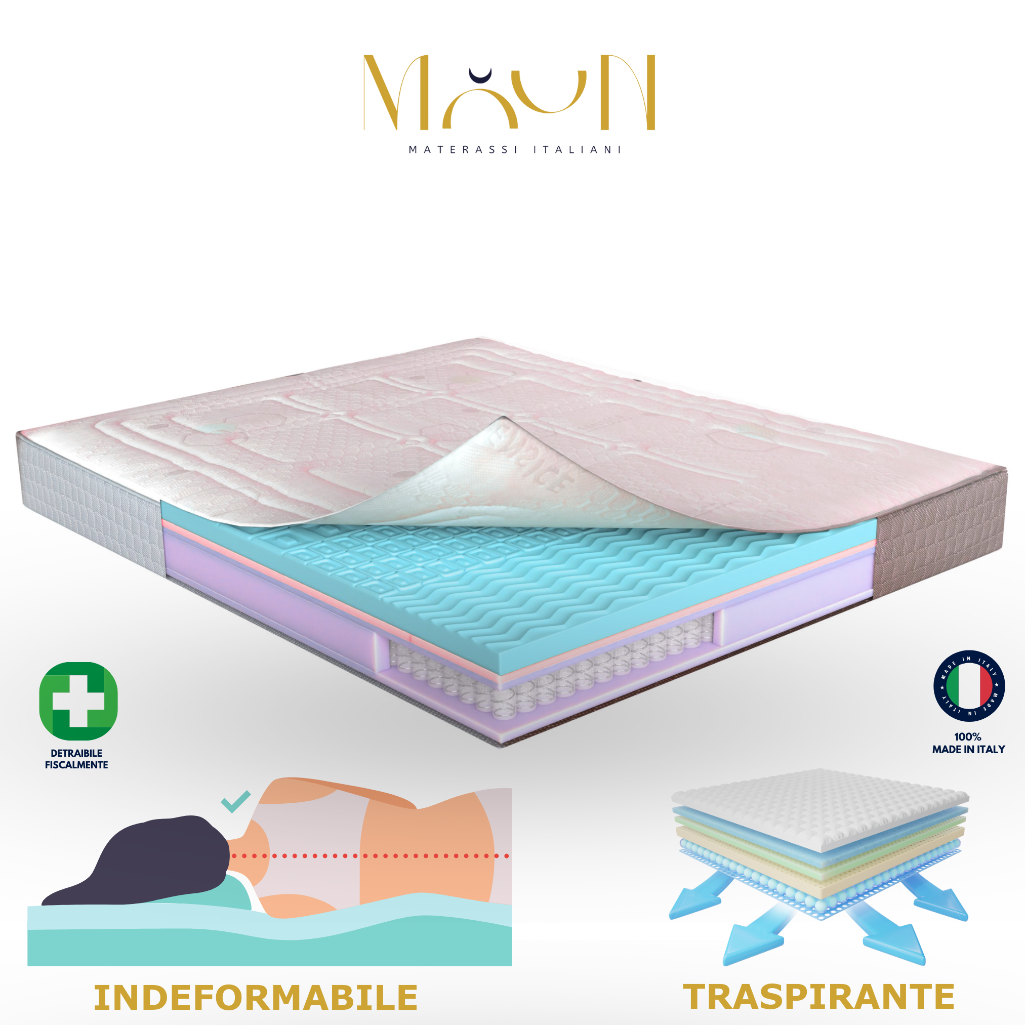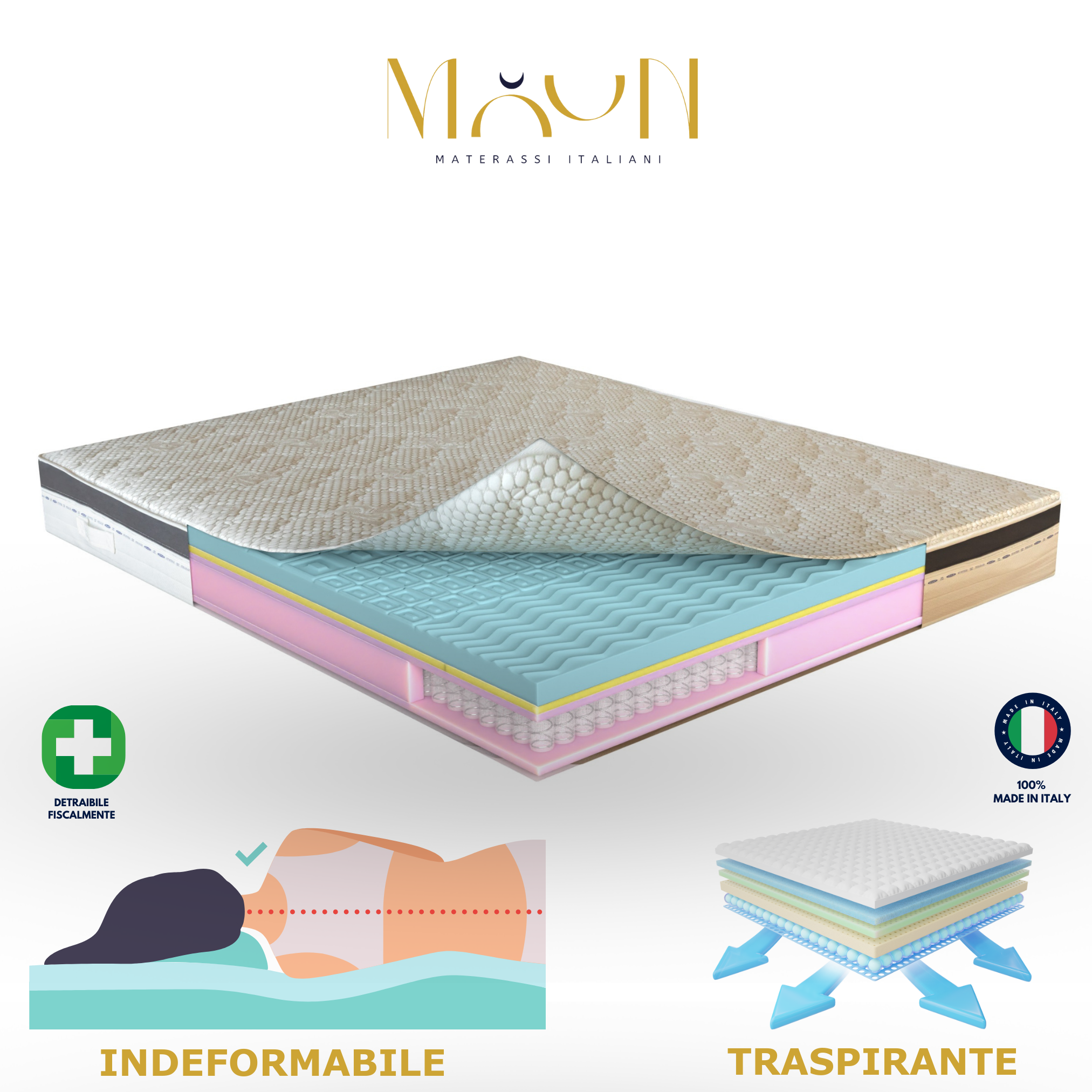 Komfort und Technologie vereinen sich, um Ihnen maximalen Schlafgenuss zu bieten. Unsere Matratzen werden aus Materialien höchster Qualität hergestellt, um ergonomische Unterstützung, hervorragende Belüftung und Langlebigkeit zu gewährleisten. Unser innovatives Thermoregulierungssystem sorgt dafür, dass Sie im Schlaf eine ideale Temperatur beibehalten, sodass Sie jeden Morgen frisch und ausgeruht aufwachen.