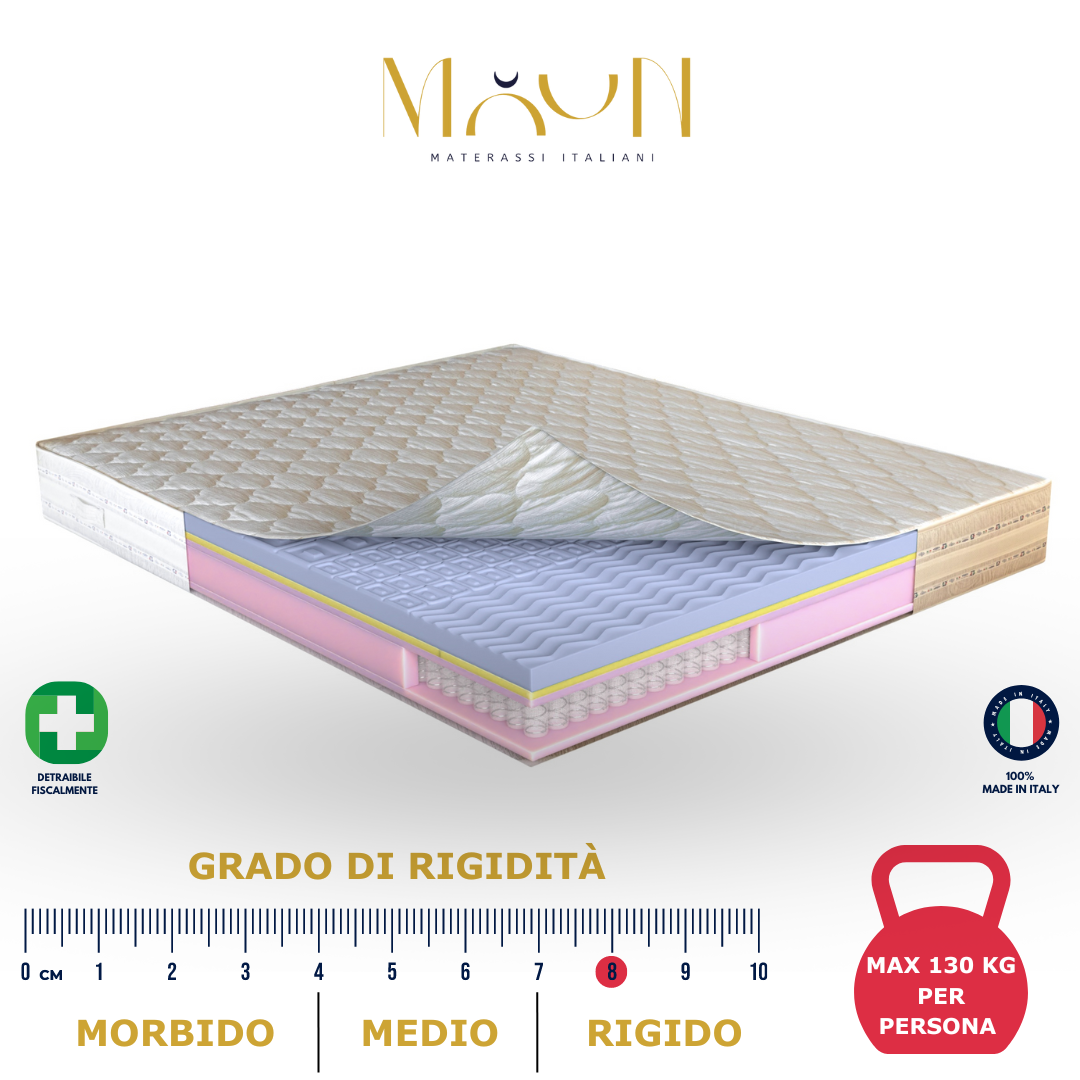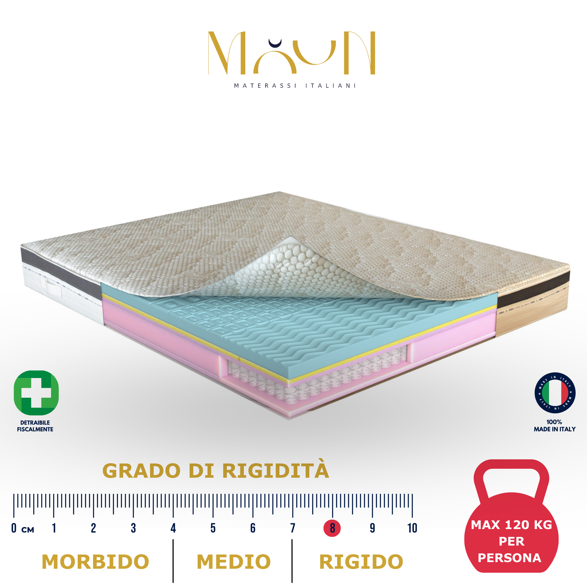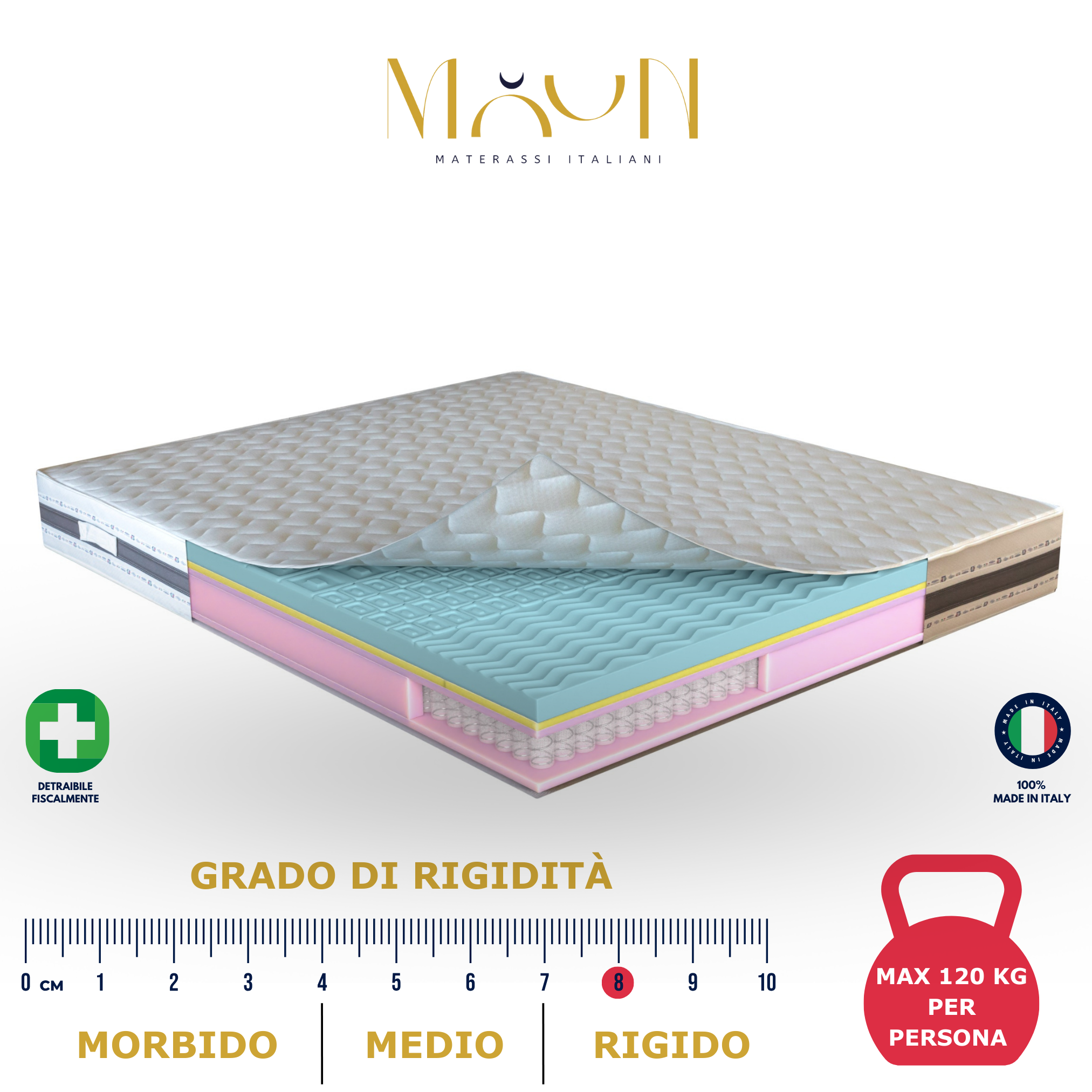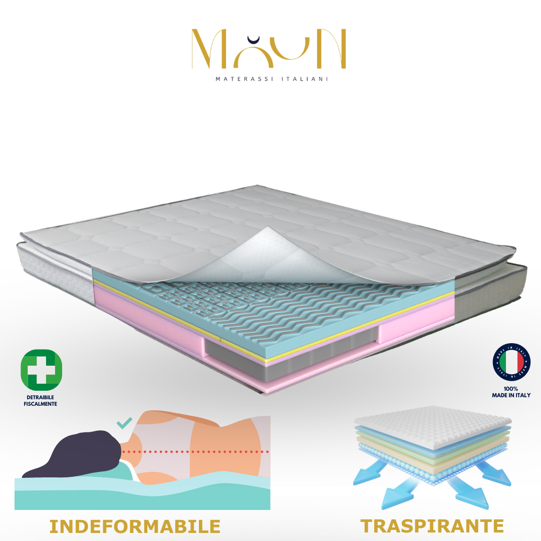 Komfort und Technologie vereinen sich, um Ihnen maximalen Schlafgenuss zu bieten. Unsere Matratzen werden aus Materialien höchster Qualität hergestellt, um ergonomische Unterstützung, hervorragende Belüftung und Langlebigkeit zu gewährleisten. Unser innovatives Thermoregulierungssystem sorgt dafür, dass Sie im Schlaf eine ideale Temperatur beibehalten, sodass Sie jeden Morgen frisch und ausgeruht aufwachen.