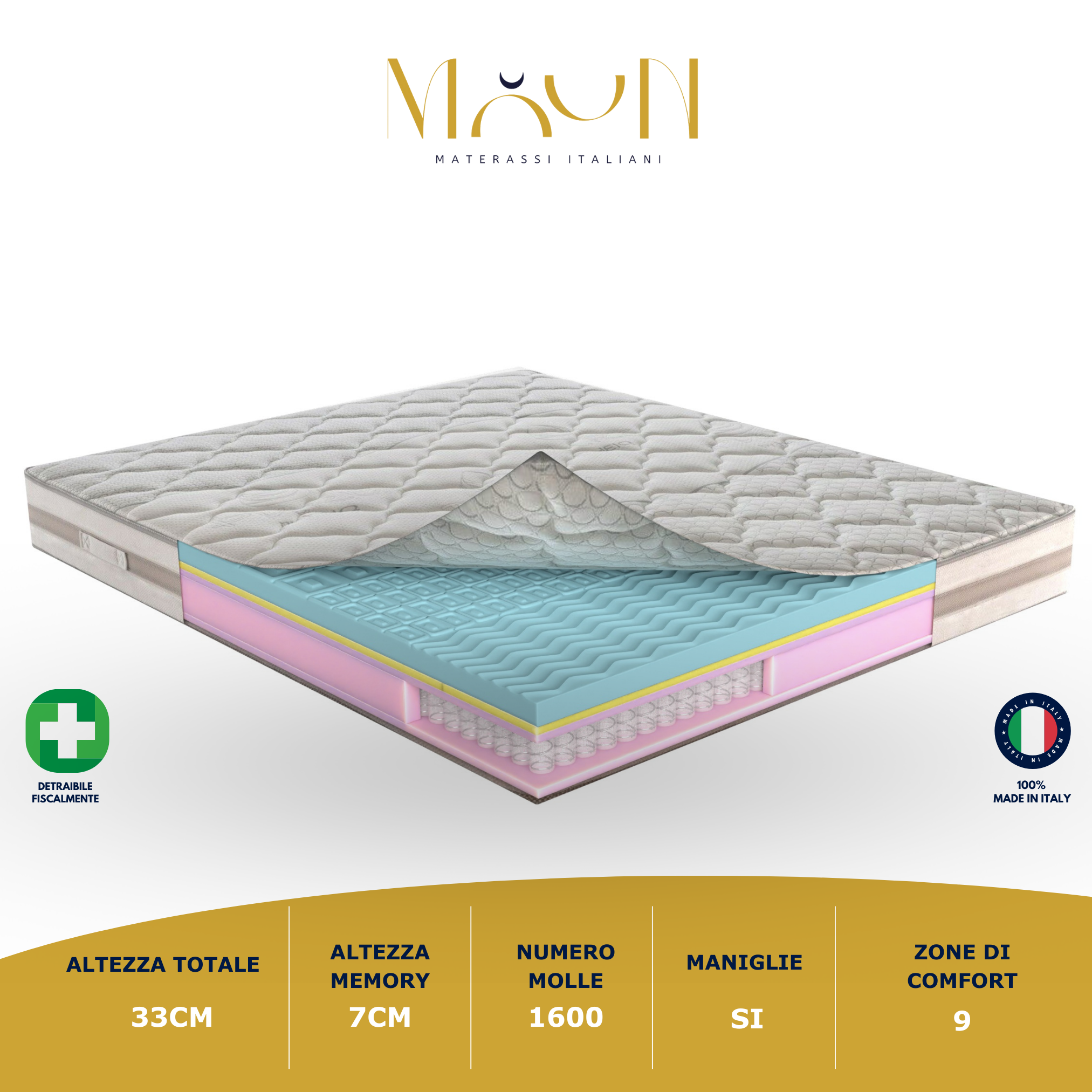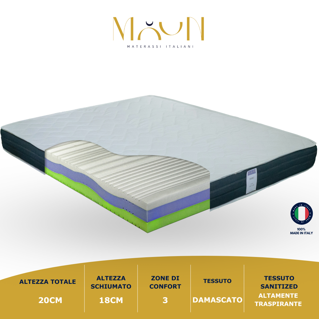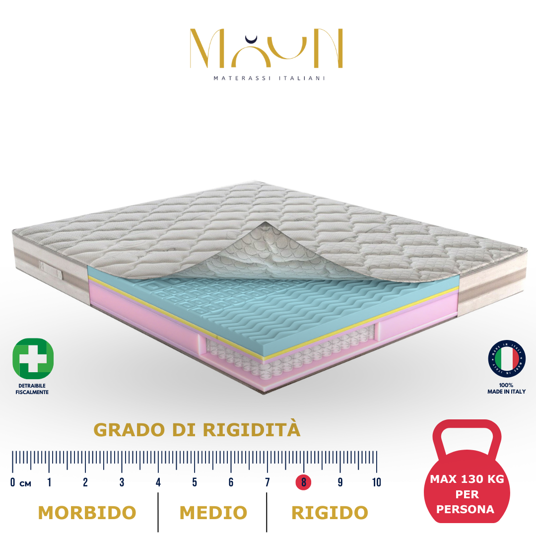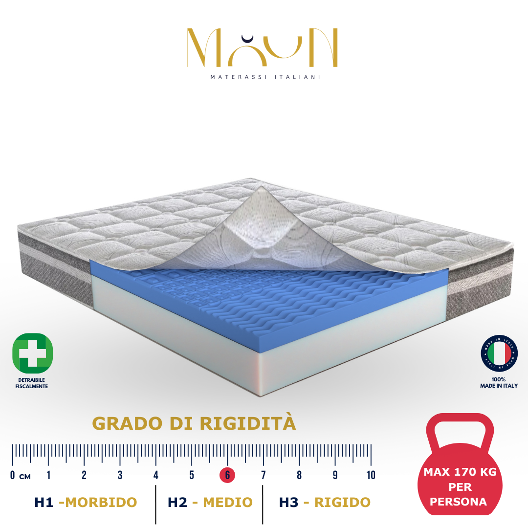 Komfort und Technologie vereinen sich, um Ihnen maximalen Schlafgenuss zu bieten. Unsere Matratzen werden aus Materialien höchster Qualität hergestellt, um ergonomische Unterstützung, hervorragende Belüftung und Langlebigkeit zu gewährleisten. Unser innovatives Thermoregulierungssystem sorgt dafür, dass Sie im Schlaf eine ideale Temperatur beibehalten, sodass Sie jeden Morgen frisch und ausgeruht aufwachen.