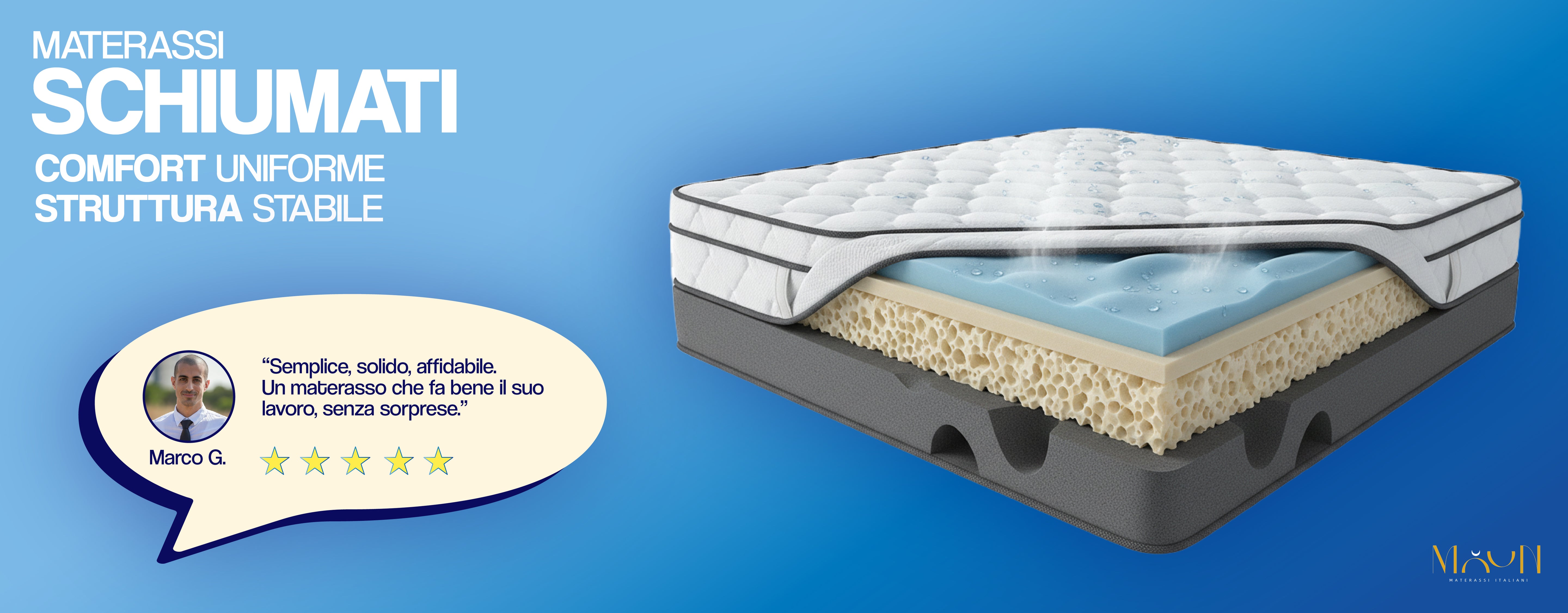 Sì. Tutti i materassi Muun sono progettati e realizzati in Italia, seguendo un processo produttivo controllato in ogni fase. Selezioniamo materiali di qualità e curiamo assemblaggio e finiture per garantire comfort e durata nel tempo.